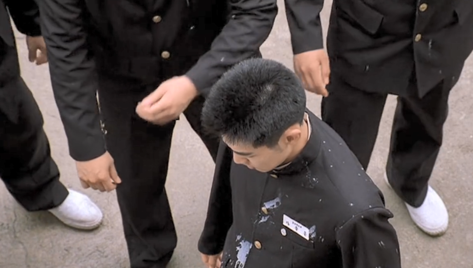 这天,钟虎正在楼下和一帮人聊天,楼上泫洙班上一个被钟虎欺负过的同学朝他扔了酸奶。钟虎大为恼火,带着一帮人就过来找茬。