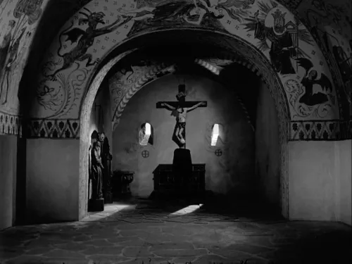伯格曼无疑将各种事件,做了一些杂糅,比如十字军东征要发生在更早的时候,而大规模的女巫迫害,则发生在15世纪,但是伯格曼将它放在同一个时间段内呈现,则就放大了时代的悲剧。