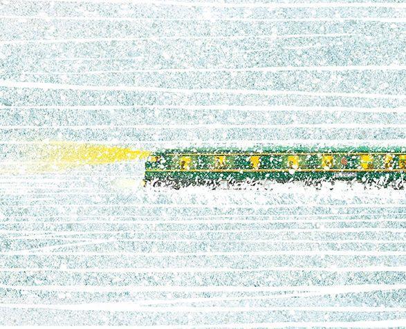 一辆火车,闯开了被漫天大雪封住的画幅。