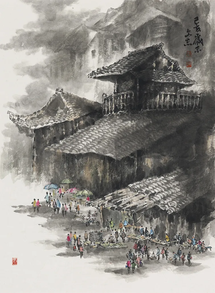 《赶集》 55cm×40.5cm