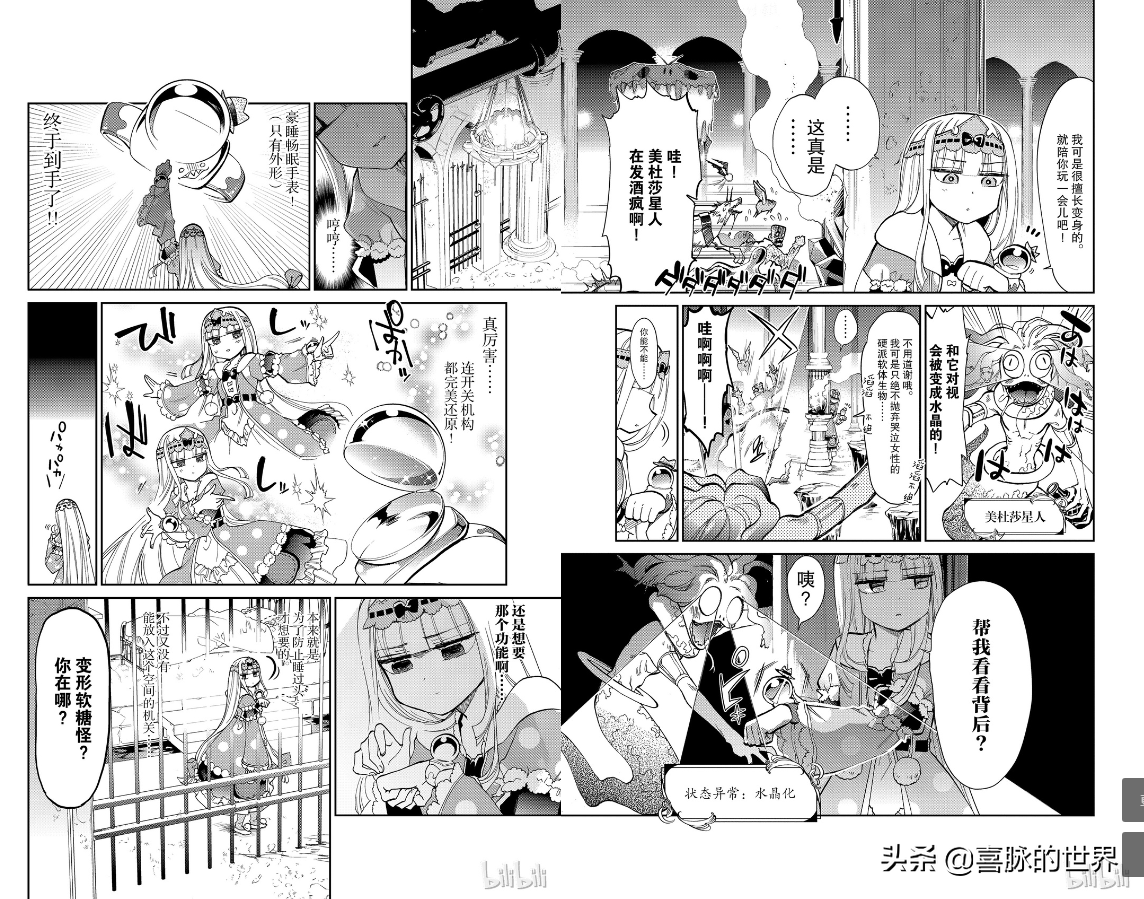 同时,以我自己的观看漫画的体验,熊之股键次的画风并不是我欣赏的那种,比如背景,由于大量的色块使得人物并不突出,在小图中塞入大量内容显得很拥挤;人物几乎都是细线条,微表情也不细致,单看公主的脸蛋,很难用“萌”来形容。