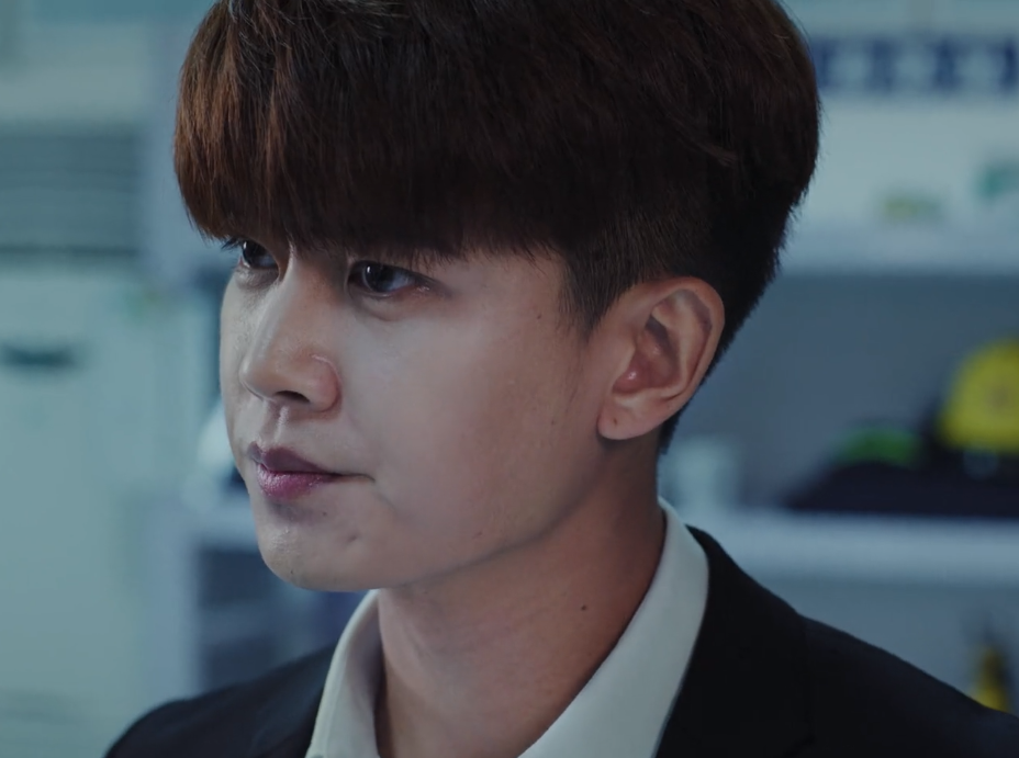 其他人都是寸头、油头等成熟发型,而主角幼稚的画风显得格格不入,在人群中显得那么耀眼,我不知道是出于什么目的,一名卧底要留这种发型,可能是刘海里有防弹衣吧。