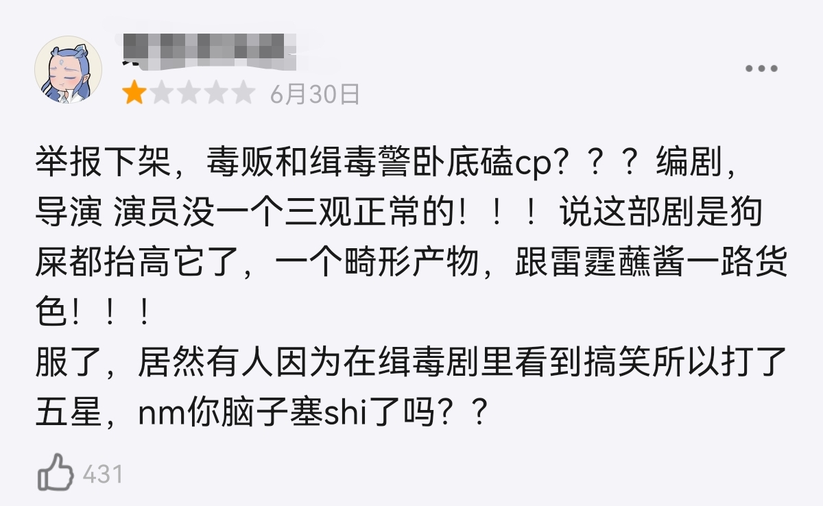 一位网友不仅口吐莲花,甚至还发起举报,对该剧达成口头与行动的高度统一,