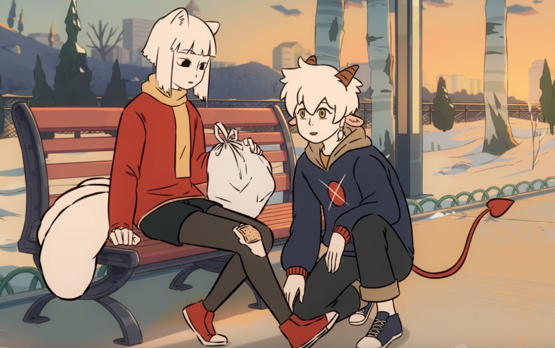 九月和泥泥也认识,那是很久之前《万圣街》动画开播之前的宣传片,用的是《非人哉》动画的画风,故事剧情是九月妹子不小心摔伤了,结果遇到了善良的泥泥,然后帮助她治疗好了伤口啥的,那时候《非人哉》的动画已经播了,这么一个安排也意味着故事的传递。