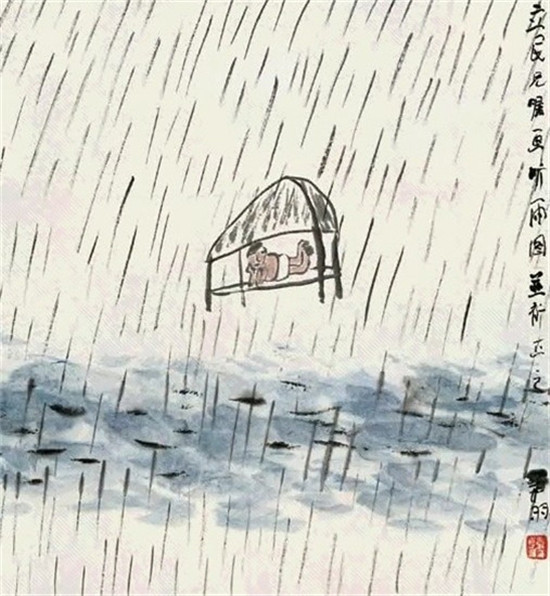 △韩羽作品《听雨图》