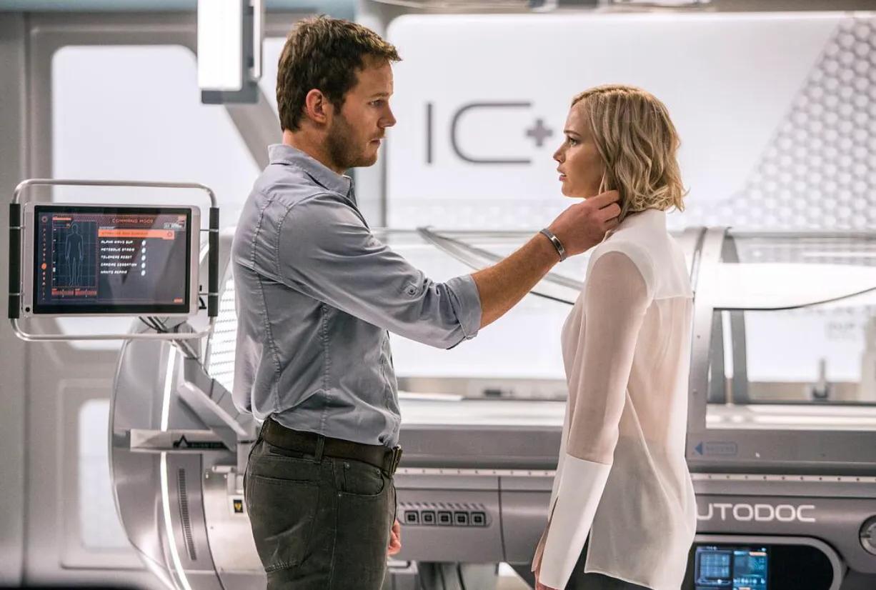 剧中,克里斯·普拉特饰演的吉姆是一个工程师,乘坐阿瓦隆号飞船去太空殖民地家园2号星球。