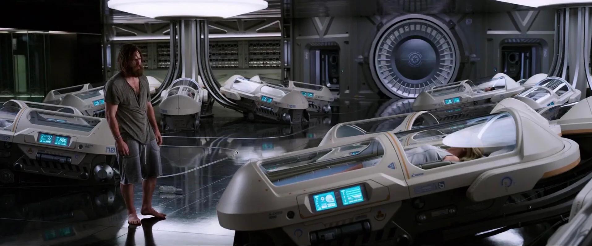 过程中,飞船遭到陨石群的撞击,出现了事故。在飞船无法进行硬件自我修复的时候,智能选择了唤醒了5000名旅客中的机械工程师吉姆,希望吉姆能够修复飞船故障。但是吉姆在醒来的1年里,由于权限的问题,并没有去修复飞船。