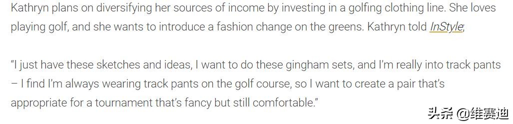 当然,凯瑟琳的高尔夫球投资还未见成效,但以她这个年龄就能有这个远见,本身也能看出她的确很清醒。
