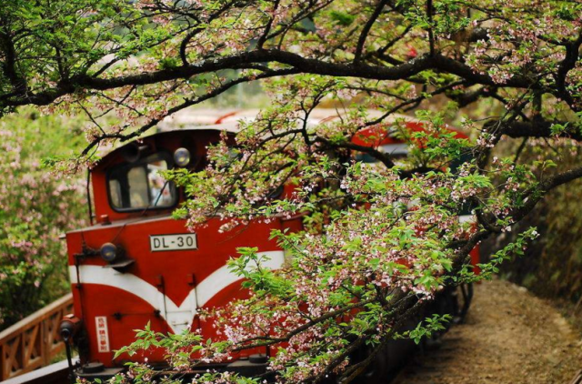 此时阿里山的樱花正值花期,