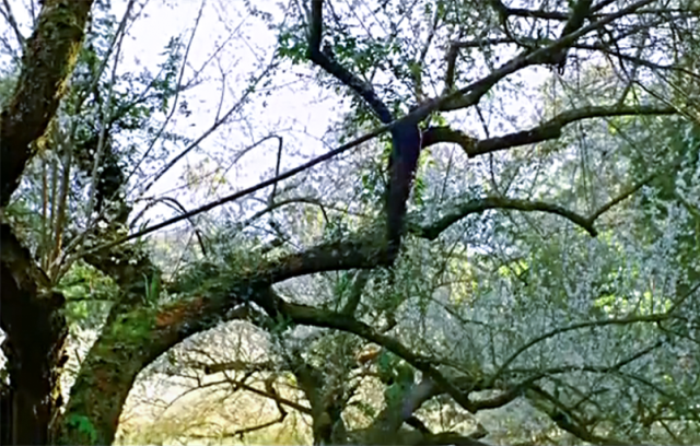 但树梢的分枝依然苍翠碧绿。