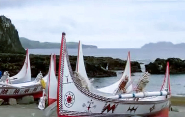 岸边停泊着的特色兰屿小船,