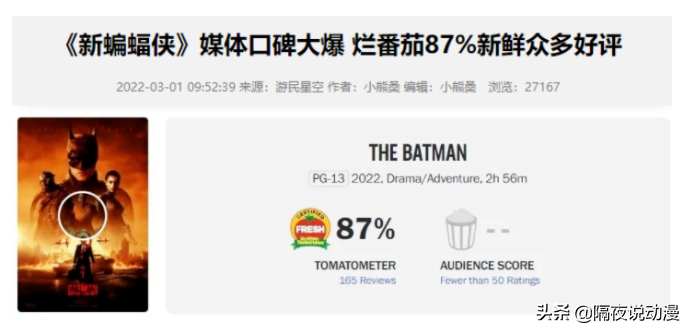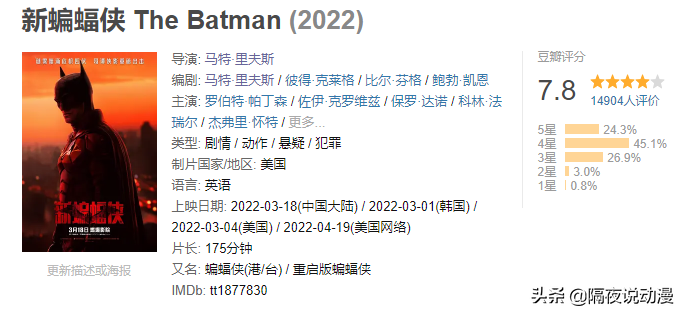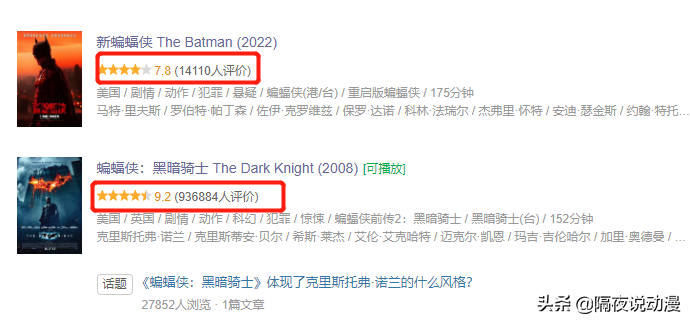 《新蝙蝠侠》上映,评分只有7.8?