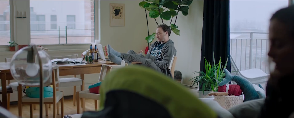 这天,妻子带着三个孩子从动物园回来。家里,丈夫正悠闲地翘着双腿,背靠着椅子,和朋友通话聊着音乐,旁边还放着“窥探”他人生活的望远镜……