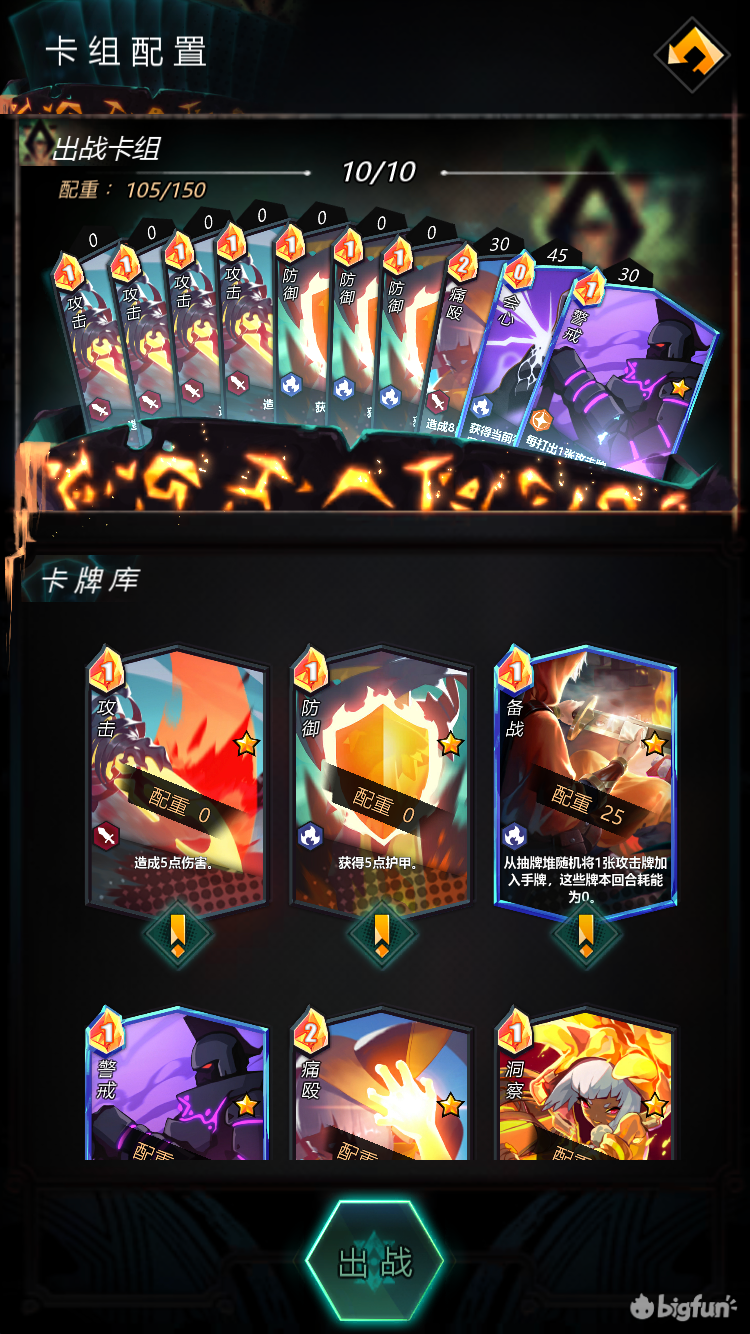 玩家可以改变自己的初始卡组,而负重系统限制了玩家能够携带的卡牌