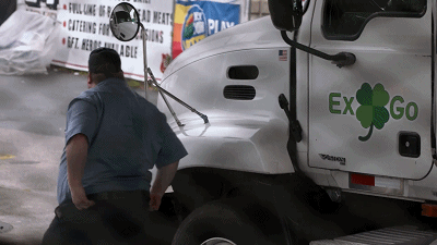 镜头一转,囚车上老爹想着油罐车上的四叶草标志,跟他胳膊上的四叶草巧合的有什么寓意。油罐车上的大胖子司机吃着汉堡,不幸病发翘了鞭子,油罐车不受控制的后退,跟后面疾驰的囚车撞了个满怀,米基老爹眼看着前面的油罐汽车越来越大,大火冲天而起。