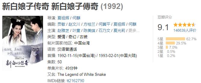 超喜欢王祖贤和张曼玉在剧中那种妖娆妩媚的劲儿,法海也很帅,就是许仙有点不招人待见哦。