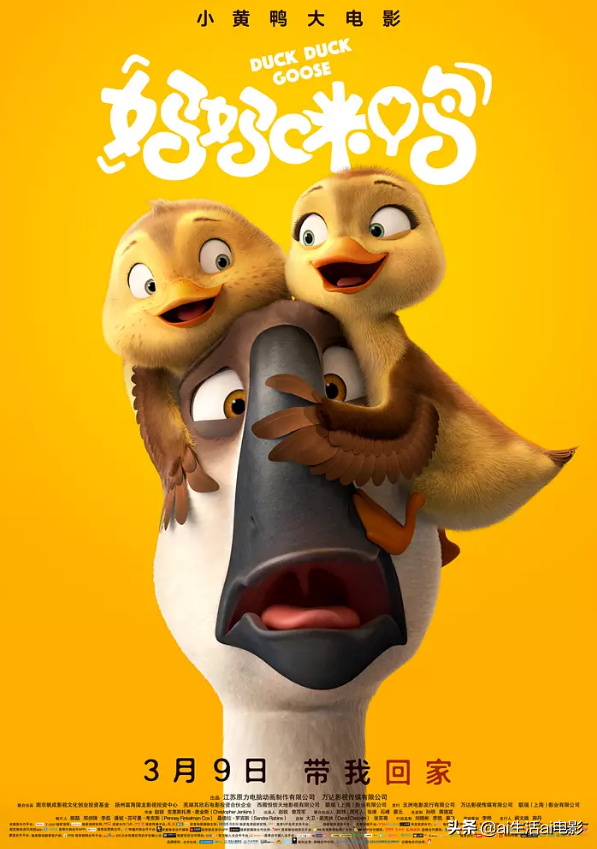 小黄鸭大电影《妈妈咪鸭》讲述了雁群往南方迁徙的途中,“最棒飞行家”大鹏桀骜不驯爱捣乱,和他的女友晶晶调情时不慎撞散了一群赶路的小鸭子。不服管教的大鹏决定单飞,不得已和两只落单的小鸭子淘淘、憇憇组成了“临时父子档”,踏上了一路乌龙的寻亲和南迁之旅。