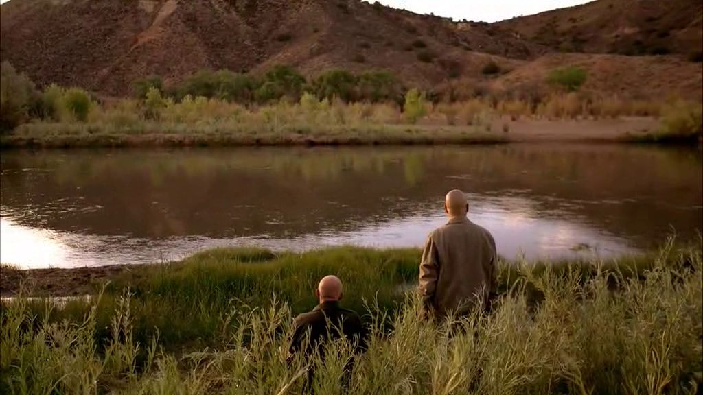 这不禁让人想起剧集里第五季第7集,老白对迈克开枪,最后迈克坐在夕阳的河边静静死去。
