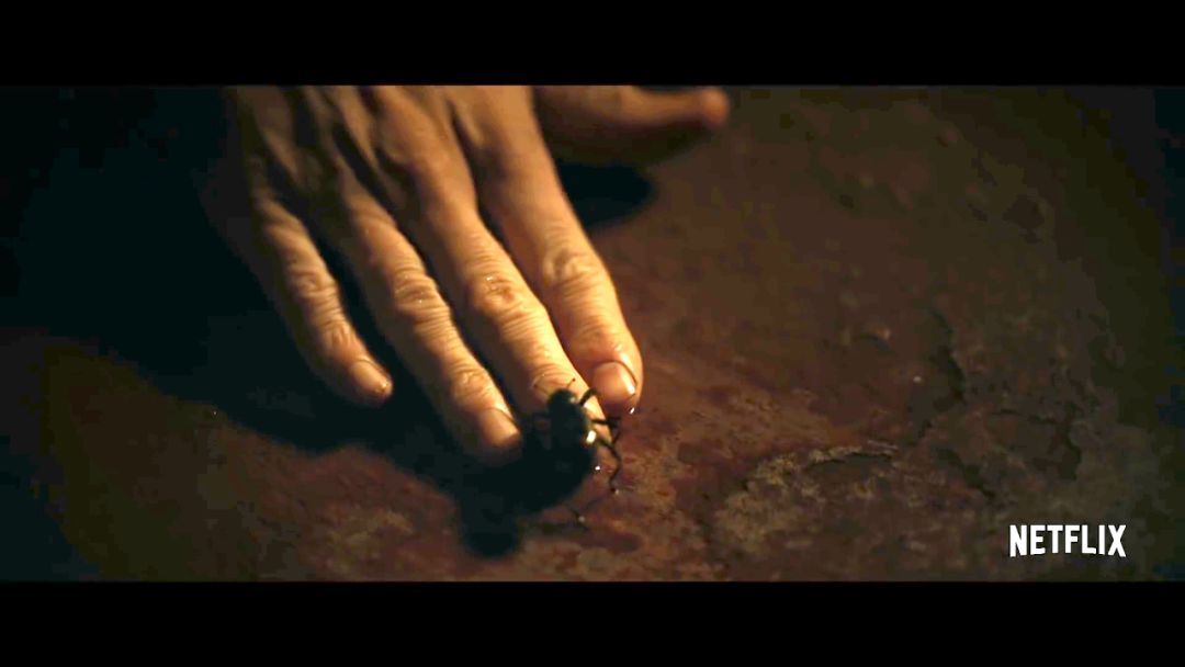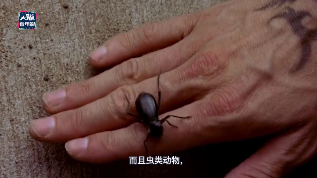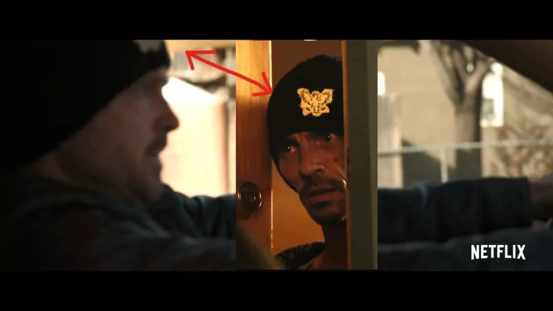下一个画面是小粉扶着一只小黑虫,在剧集中,小粉也做过同样爱护小昆虫的举动,而且虫类动物,在《绝命毒师》系列中一直有着比较强的隐喻。