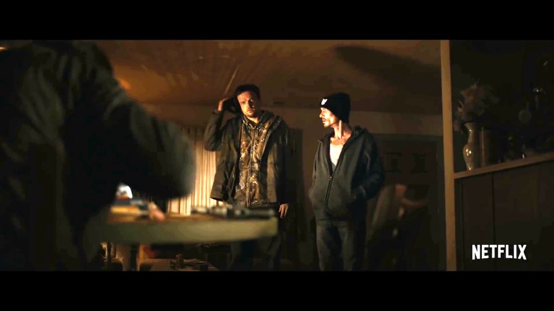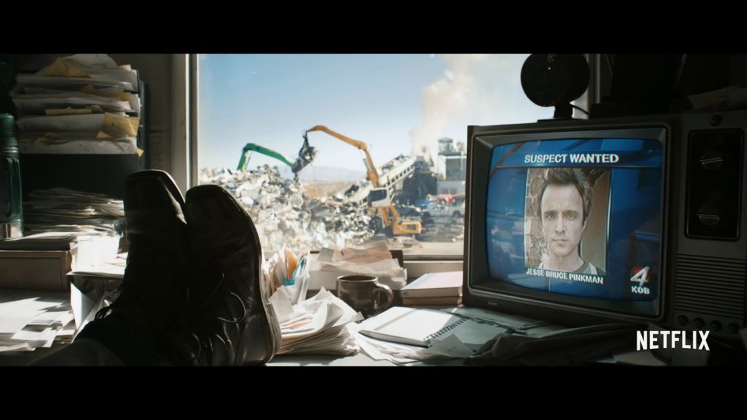 这支预告告诉我们电影的时间背景,是紧接着《绝命毒师》最后一集的内容,老白救下小粉,小粉开车离开。