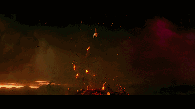 ▲两个神变身之后的打斗。影片展现的庞大的世界观,许多有趣的设定,比如神的普通形态是人型,但比凡人要高大,血管里流的是黄金。