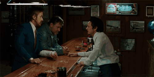 私家侦探马奇(瑞恩·高斯林饰)整日烟酒不离手,冒冒失失,又衰又怂。就是那种为破案非要徒手砸玻璃,血流满地不得已惊动救护车,别人还以为他是要自杀的级别。