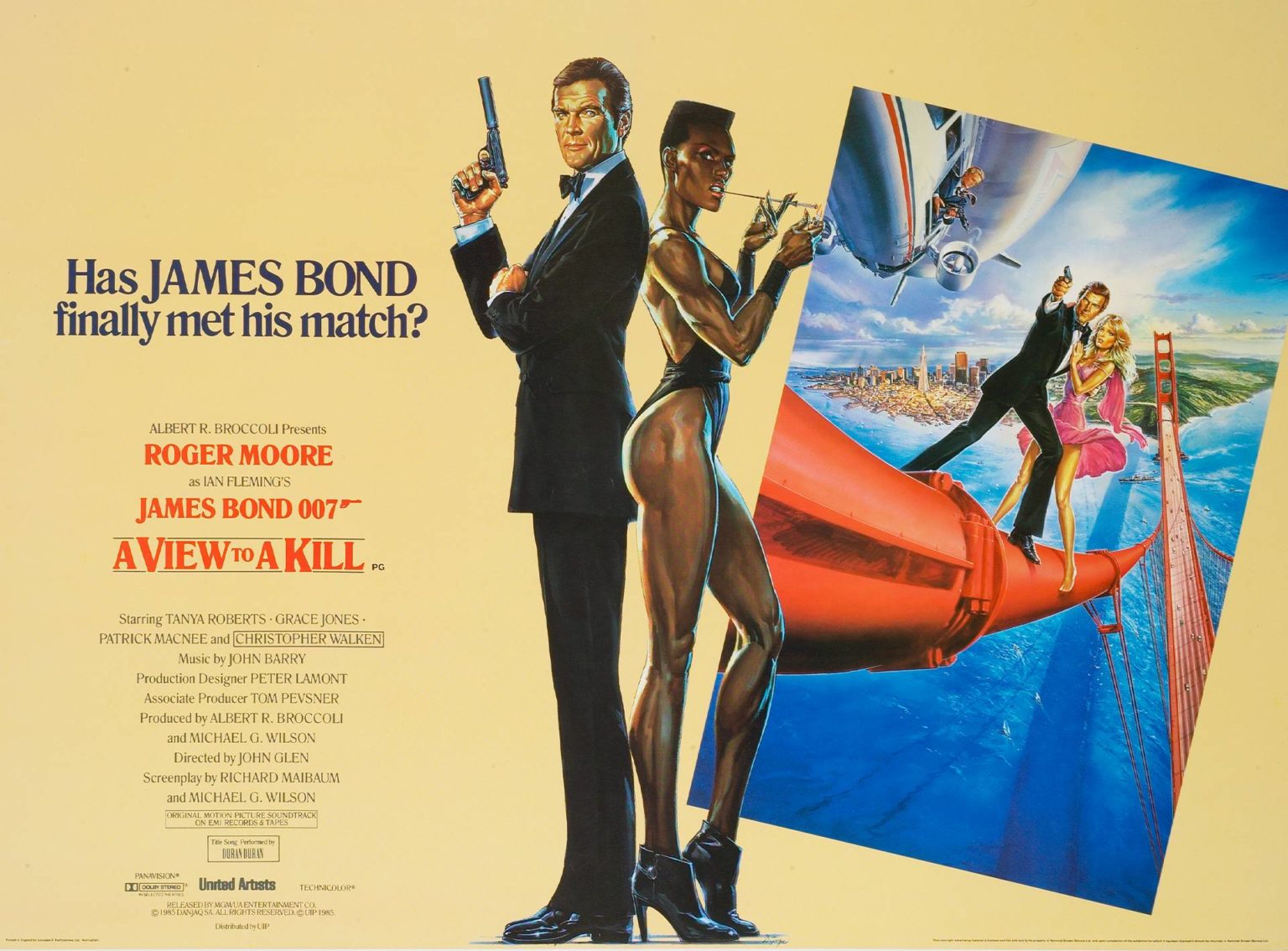 007系列的第14部《雷霆杀机》a view to a kill,1985年5月24日上映,约翰·格兰导演,罗杰·摩尔主演,邦女郎为葛蕾丝·琼斯。