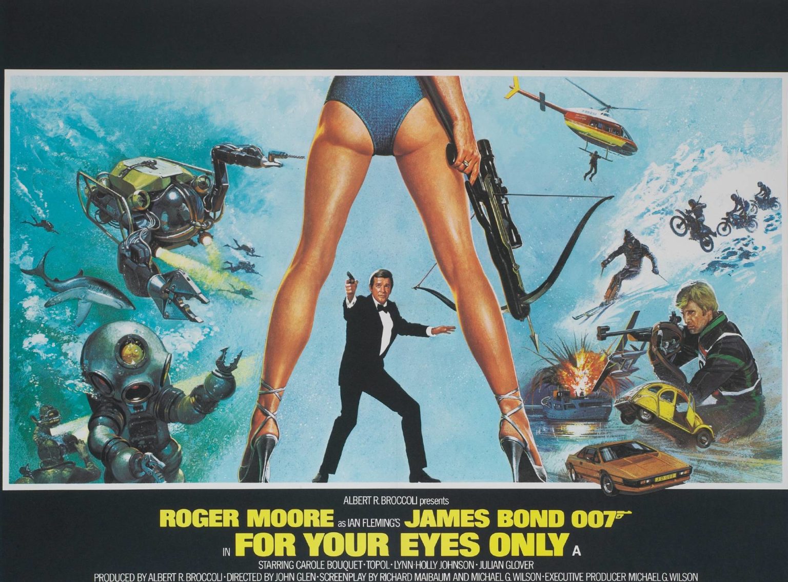 roger moore, carole bouquet, julian glover, topol, lynn-holly johnson, lois maxwell, desmond llewelyn