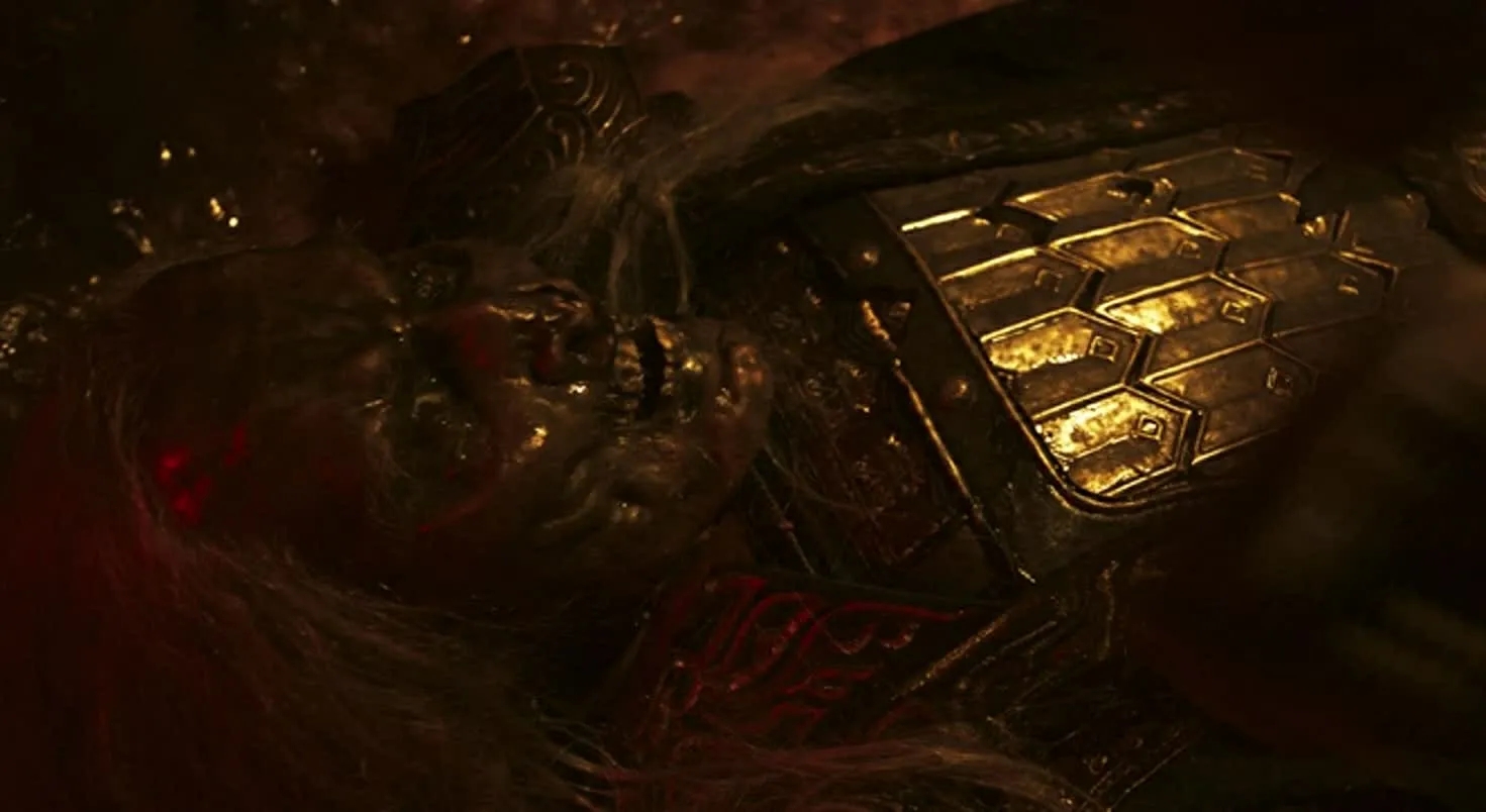 再就是费振翔也玩出了一些cult片的恶趣味,比如雮尘珠极像被献王盘到包浆的文玩核桃,以及献王由费振翔样貌倒模完成,都很恶搞了。