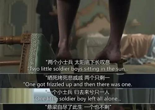 这时,女秘书维拉发现了房间里奇怪的牌子:十个印第安小男孩,为了吃饭去奔走,噎死一个没法救,十个只剩九。