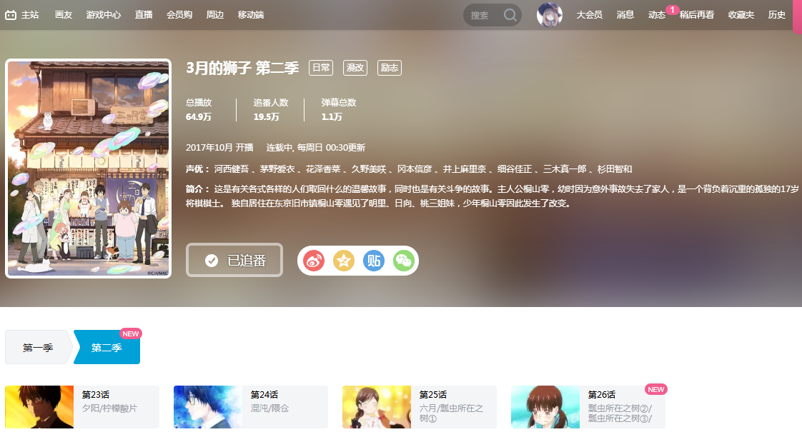“三月的狮子简直太牛了,最新话效果比原作还要出彩,本季度最佳我觉得应该给这部。”