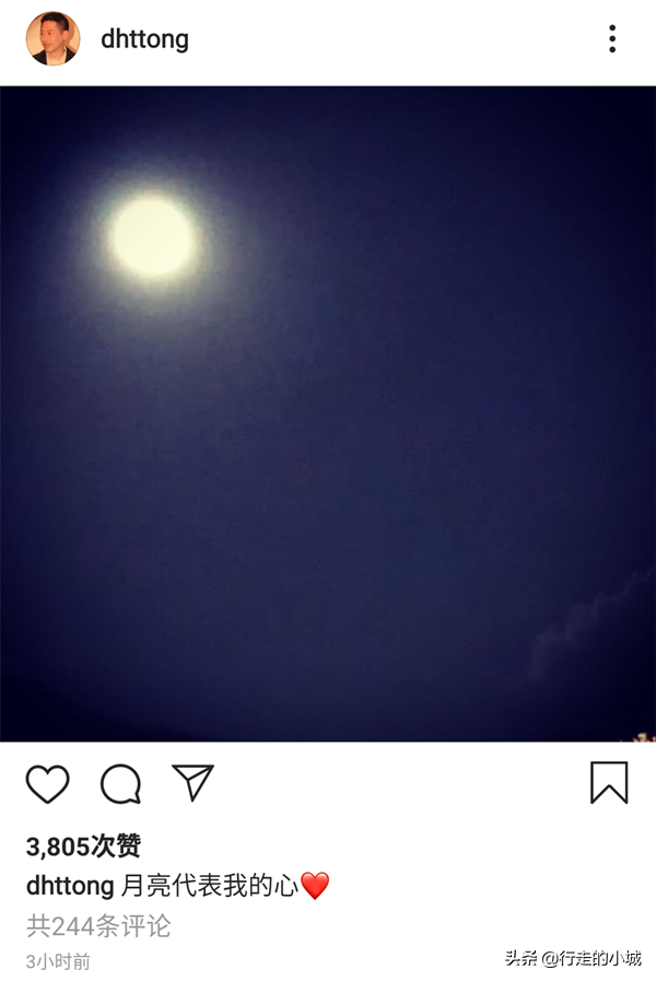 10月3日,张国荣生前挚爱唐鹤德发了动态,晒出一张天上明月的照片,并配文:“月亮代表我的心”,加上了一颗爱心的表情。