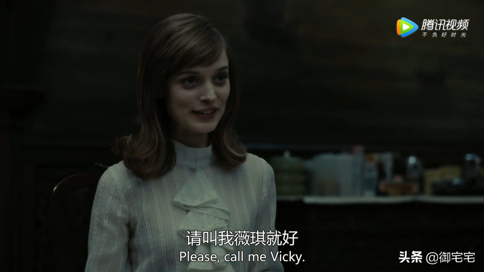 从精神病院逃出来的一位长相酷似乔赛特的年轻女孩,她要去柯林斯庄园应聘当家庭教师,她练习自我介绍时,为自己临时起了一个名字,维多利亚(victoria winters),当被人问起她为何从纽约来到小乡村—此时背景音乐刚好唱到“i can’t say anymore”—她愣了几秒,回答说为了一个故人。