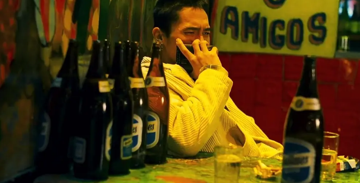 值得一提的是,《最后胜利》里“在酒吧录音”的这个经典场景,后来还被王家卫沿用到了《春光乍泄》里。