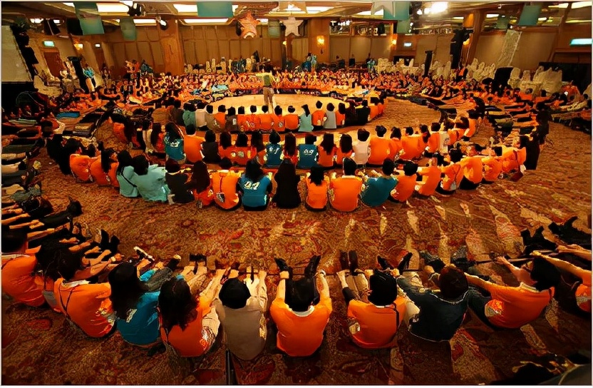 游戏玩法:直径1.5米圈外,每个人手持1根或几根绳子控制一支大毛笔,用清水在地面或报纸上练习,最后由团队一起来书写我们的团队文化。让参与者体验如何进行有效沟通,并迅速达成决议,深刻感受团队解决问题的能力,团队合作精神,岗位职责与部门之间配合的重要性。