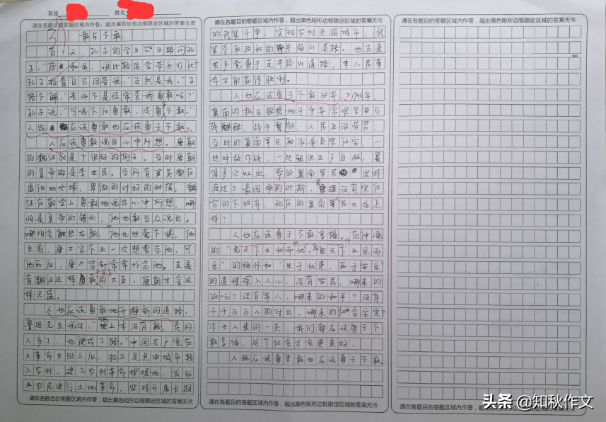 知秋老师以为,“敢与不敢”,这个题目,分明就是要学生就两者的关系,做一个辩证的阐述。
