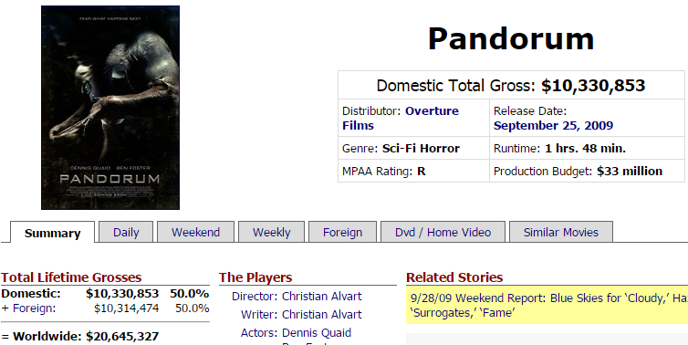 最后需要提一下就是,这部小编看来设定严谨,想象力丰富的科幻惊悚电影,最终票房亏损严重,投资3300万,票房只有2000万