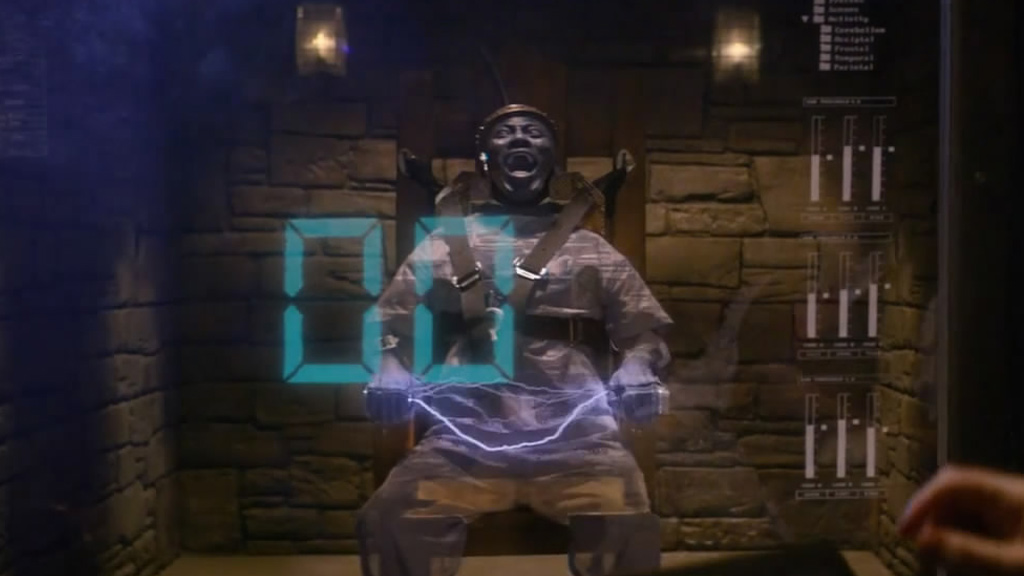 无限电刑死囚在看似无关的小故事之间,一条主线隐隐地被串起,这个线索贯穿了整个黑色博物馆的设计,医师实验的痛觉共感技术,加上完全复制意识的还原技术,变成的毫无人道的主展品:无限电刑死囚。被电死的囚犯透过复制意识的技术重生,痛觉共感让他能不断地重复死亡瞬间的电击痛苦,这项残酷的“娱乐”和白熊世界有异曲同工之妙。