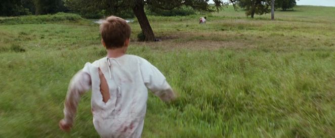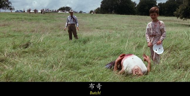 当雇工家的孩子想和布奇接着玩游戏时,被惊恐的男主人狠狠地打了。