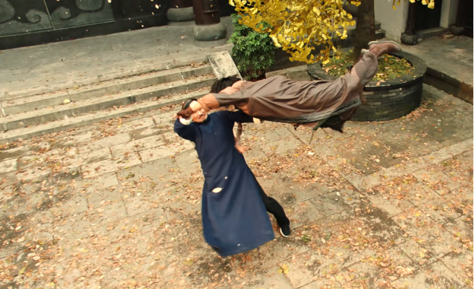 如果还不够明显,那么你记不记得有一招从天而降的掌法?这部电影里,本着“拿来主义”的精神,直接修改成了有一招从天而降的拳法。