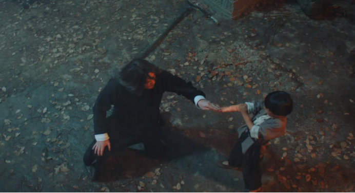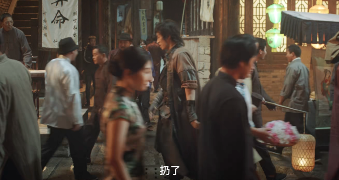 刘晶被馆主打伤后,小师妹用手帕给他包扎伤口。后来刘晶独自走在街上,看着手帕不知在想些什么。然后神奇的一幕出现了,他一边把手帕扔掉一边说“扔了”。