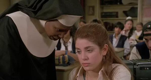 这太糟糕了,很多机会都被错过了,因为乌比·戈德堡是一位同情的喜剧演员,他本可以用更多的条理性和智慧的剧本来做很多事情。而在洛琳·希尔(lauryn hill)的精彩表演中,这位才华横溢的年轻女子辍学后,也同意加入唱诗班,但她必须超越她严格的母亲(谢里尔·李·拉尔夫)。希尔有一个快乐的音乐嗓音和灿烂的笑容,是另一个天才的废物。"