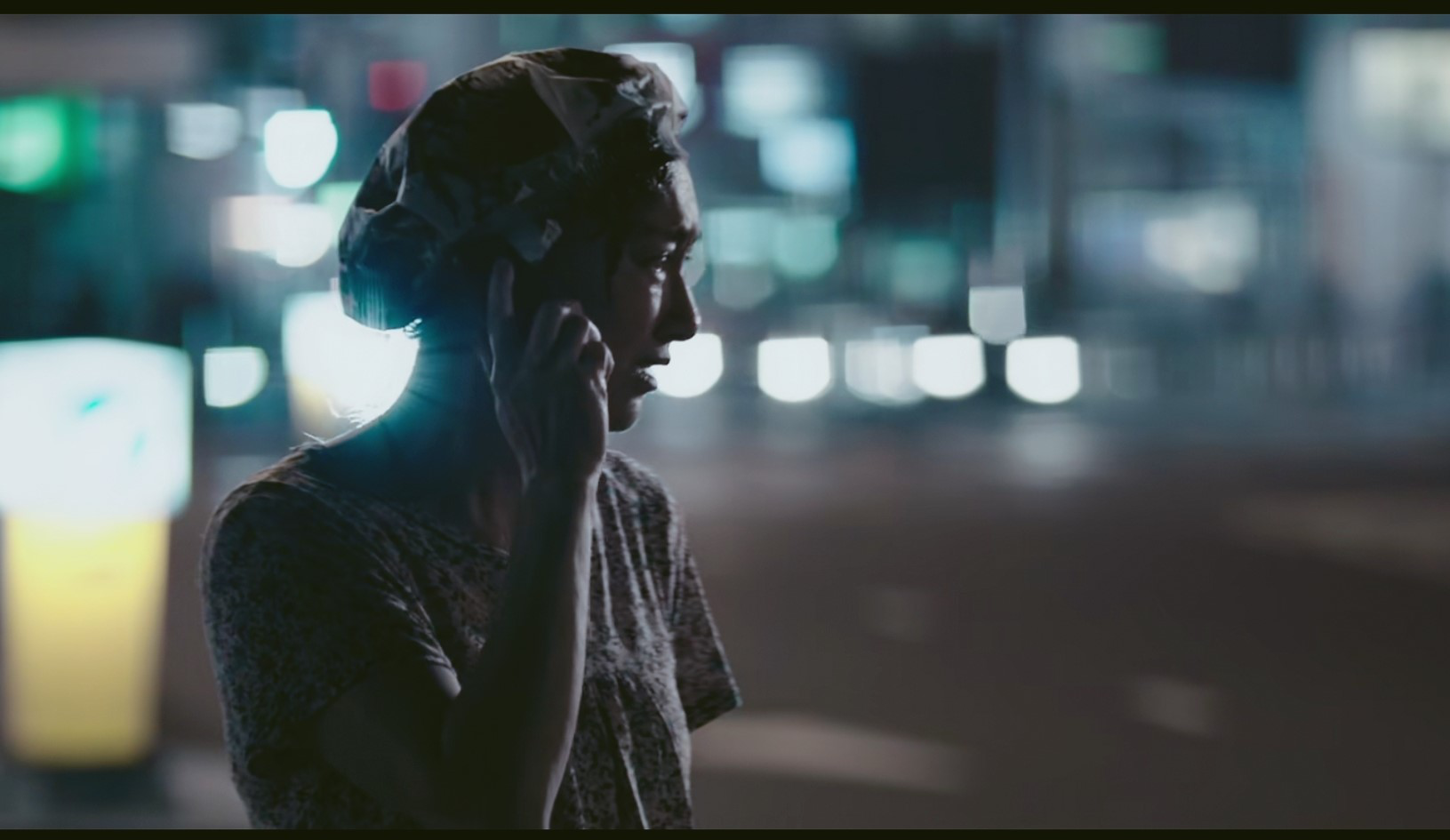 她穿着睡衣,戴着涂满了染发剂的头套,茫然无措地站在街头,四处张望找寻着阿旭的身影。