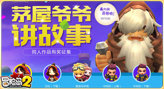 快来参与《冒险岛2》同人征集活动,赢取内测资格,同时,在“茅屋爷爷讲故事”视频下方点赞留言的岛民,一样又机会获得珍稀内测体验资格哦!