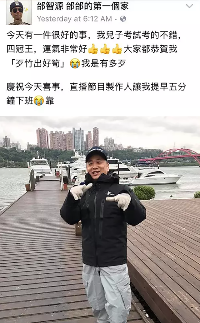 《全民大闷锅》制作人王伟忠说过,邰智源在纽约念传播艺术硕士时下过很大苦功,刻苦精神叫人佩服。不要吃惊,风格相当本土化的邰智源其实是老一代高学历海归!不仅如此,他儿子也获得台大四个科系录取资格,加上邰哥母亲就毕业于早稻田大学,一家子其实都是学霸来的!去年,得知儿子成绩,他在个人社交平台调侃“歹竹出好笋”,用自嘲来表达喜悦!