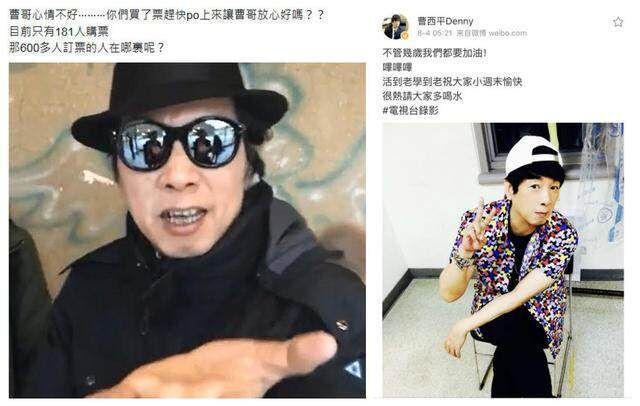 除了日常出现在大小综艺通告,内心依然火热奔放的曹西平还搞了场小型演唱会,然鹅····只卖出了181张票,曹大哥十分不爽,呛声粉丝要关闭脸书,经过两天要喝拉票,终于从181张增加到182张···,还好经过宪哥助力最终票数基本全部售出,也就是398张~~~鼓掌~~~