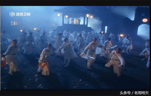 陈近南出场时拉风,死的也惨,我猜他一定是买了个假的宝剑与此相关的水货形象还有陈近南带来的铁血少年团,也是个个白衣飘飘,整齐列队,背负大刀,主要是人数还挺多,但当晚上他们在广场中列队等待,有两个人小声细语说“家人还在等吃年夜饭”时,就让人有不详的预感。果不其然,黑衣人一杀来,白衣人被虐,死的那叫一个惨啊!