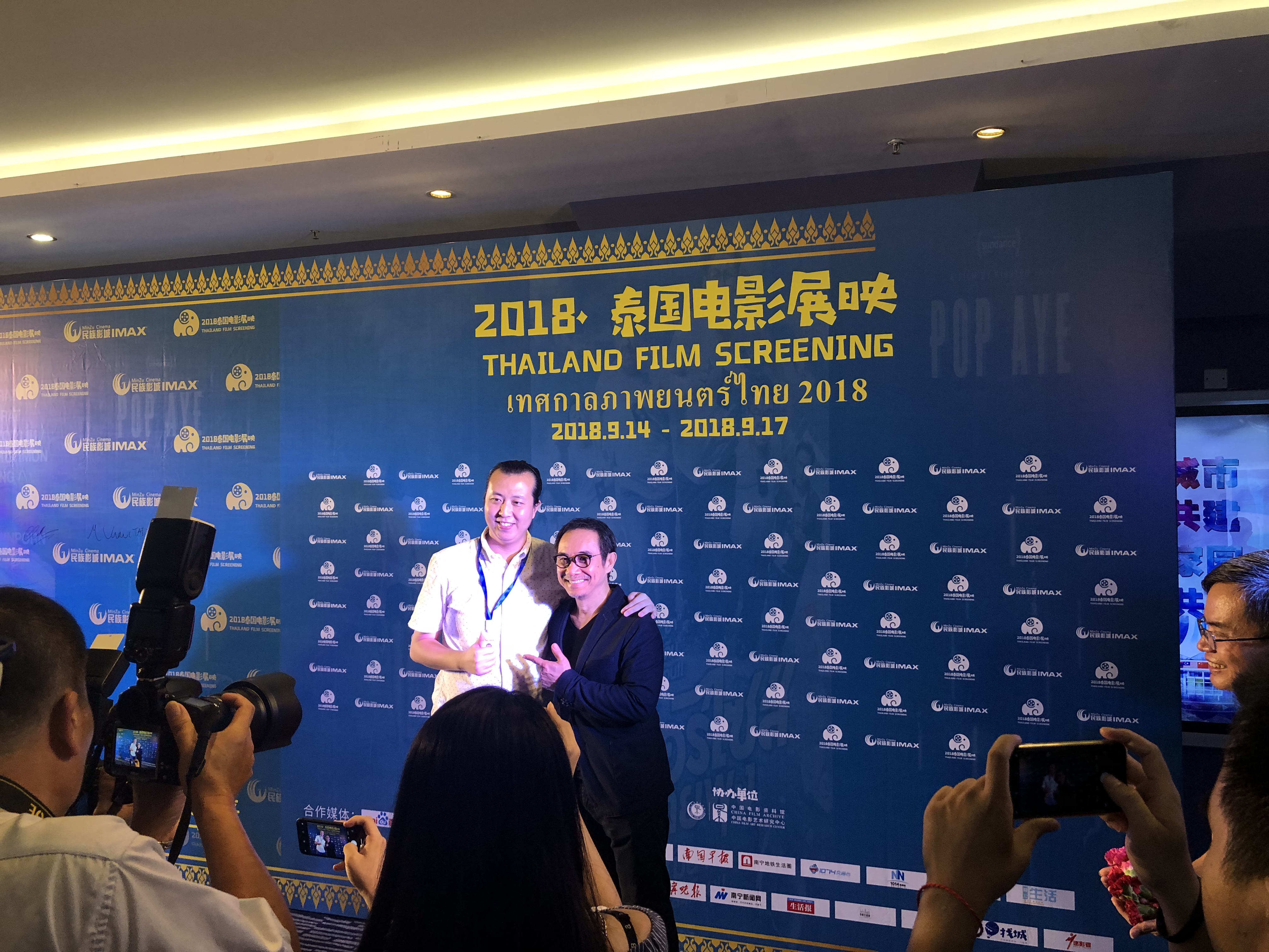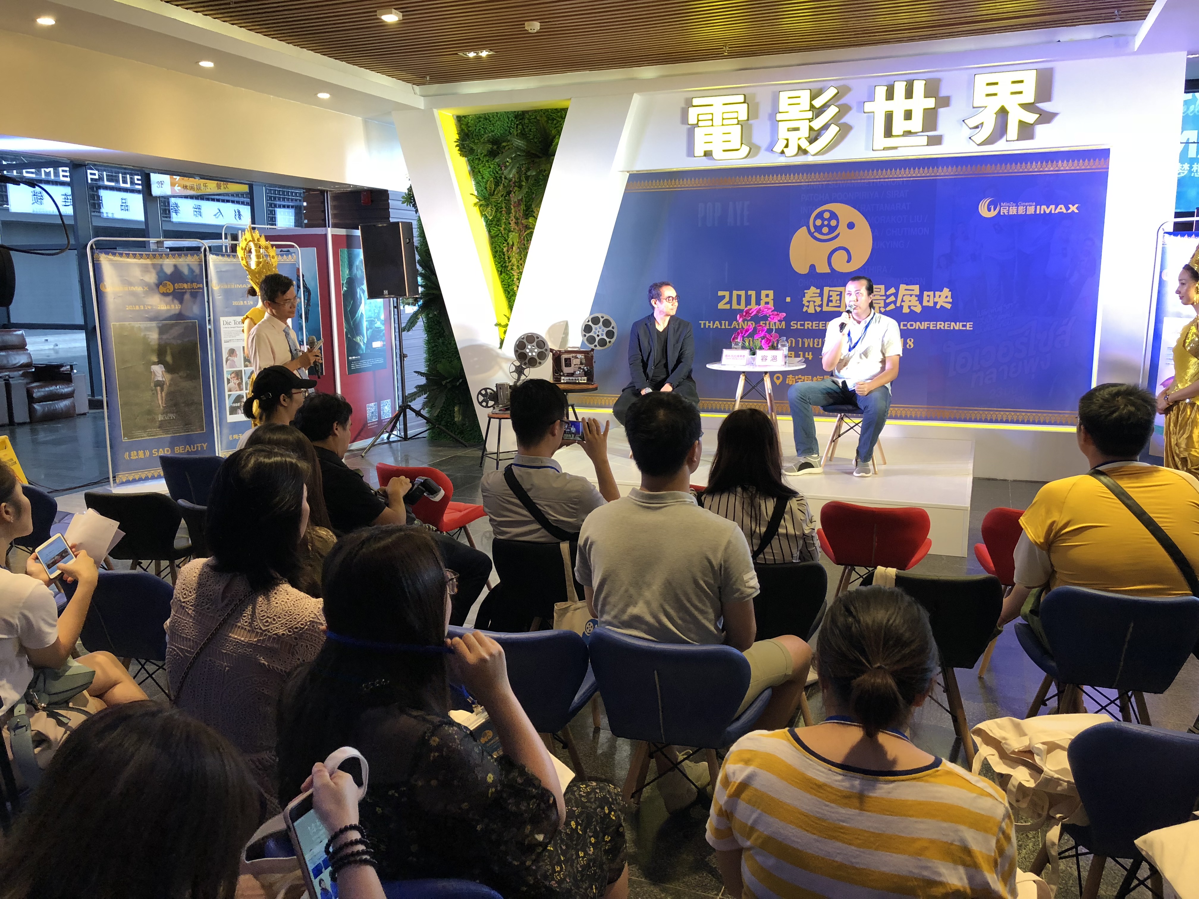 9月14日,“2018·泰国电影展映”主办方民族影城于3楼电影世界成立新闻发布会,公布活动筹备情况和主创阵容;介绍服务安排、引进影片情况、活动场地和服务情况。南宁民族影城市场部经理容浥、泰国电影《大笨象》主演塔内·瓦拉库努娄thaneth warakulnukroh出席发布会。