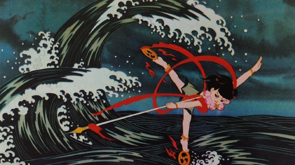 《哪吒闹海》,是中国第一部宽银幕长篇动画,是根据古典神话小说《封神演义》改编的。在动画里,哪吒不畏强权,勇斗龙王,哪吒不忍看到生灵涂炭,便引剑自刎。