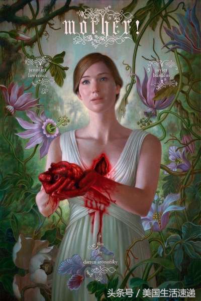 反正目前来看,这支电影的影评呈现一团模糊状态,有人认为这是导演隐喻美国收留难民的缩影,也有人以为这是对人类破坏大自然的暗喻,而电影海报是被剖开胸膛的女主角捧着心脏的画面,也让这支电影更予人毛骨悚然的感觉。